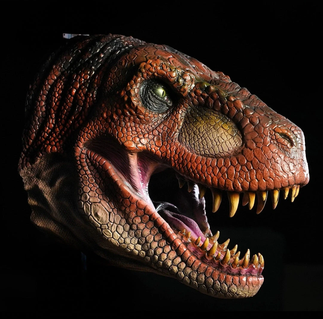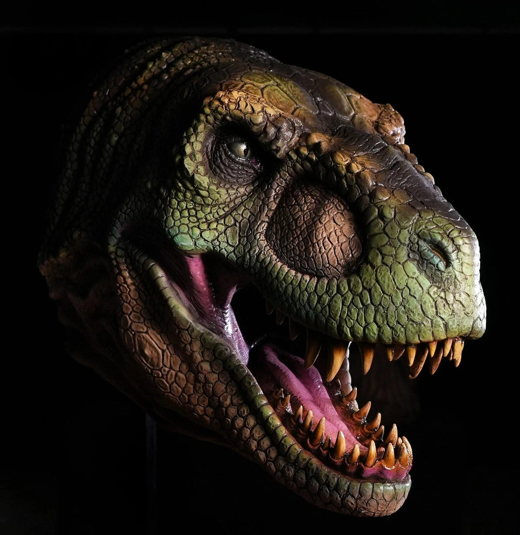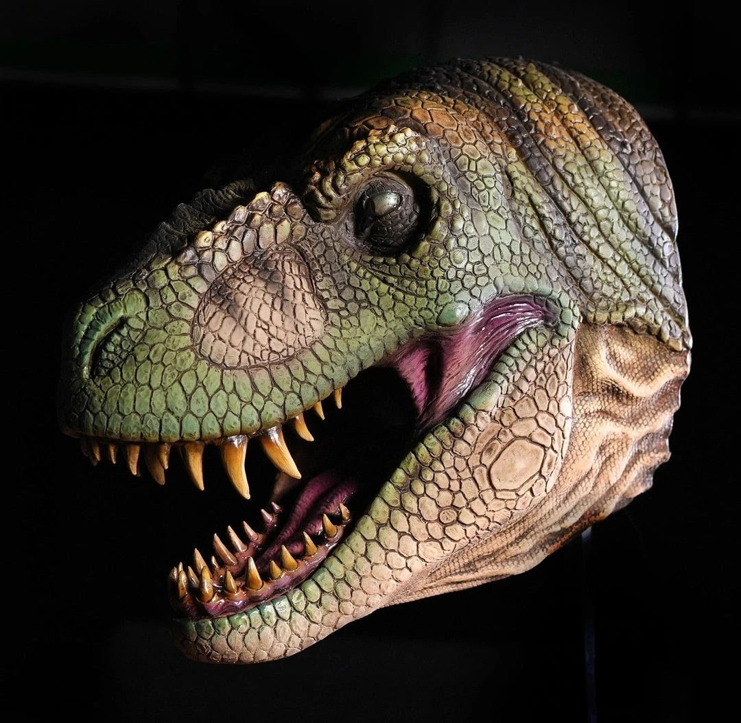 The Trex Head Wall Mount Prop comes available in four colors to choose from. Jungle Green, Desert Red, Mountain Grey, and Swamp w/ bloody teeth.