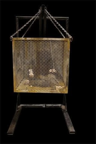 This Wild Thing will make your heart sing… in terror. Not exactly “groovy,” this murderous maiden can’t control her violent outbursts. And so, she’s been locked in a cage until her family can figure out what to do with her. Go ahead, have a look, her steel enclosure will surely hold. Do you feel the urge to free her? Do you understand the damage she could do if she ever got loose? Don’t fool yourself, she’s a lost cause. The Wild Thing animatronic is a hanging prop that features a psychopathic individual trapped in a metal cage. This adaptable character can be possessed by demons and awaiting an exorcism, suffering from a witches spell, an untreatable serial killer, or an innocent girl, captures by a sinister sicko, the choice is up to you. Manufactured by The Horror Dome, this sturdy set up is hand detailed for a creepy, lifelike look.