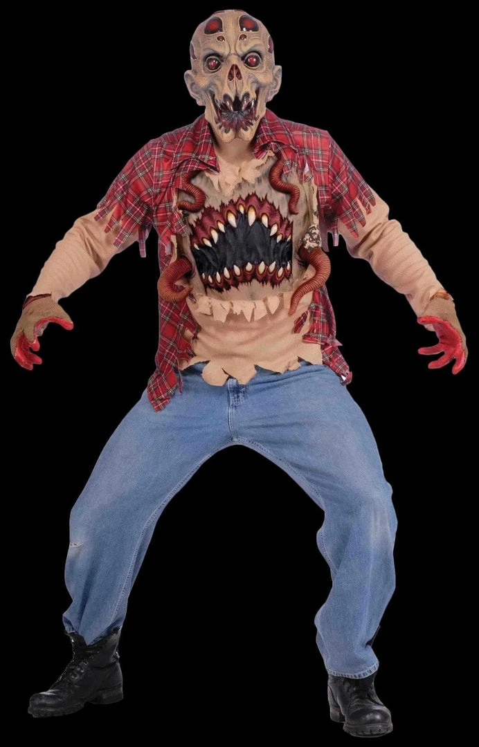 Alien mask with two shirt design and attached latex organic alien opening in front. Adult standard fits up to size 42.