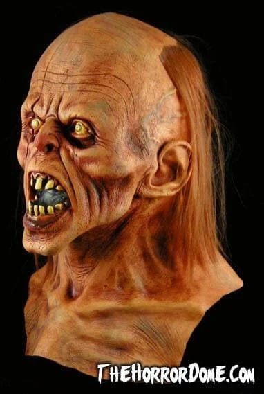 Featuring a bald head, encircled by stringy red hair, a slash through his right eye, and a beady yellow stare, this madman is sure to impress at the costume party. Gross teeth and a muscular, strong looking neck round out this horrific design.
